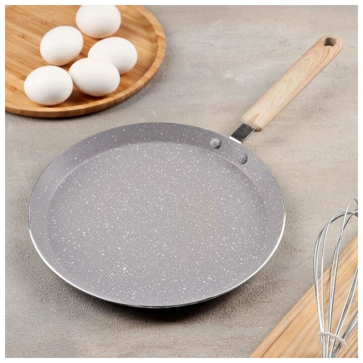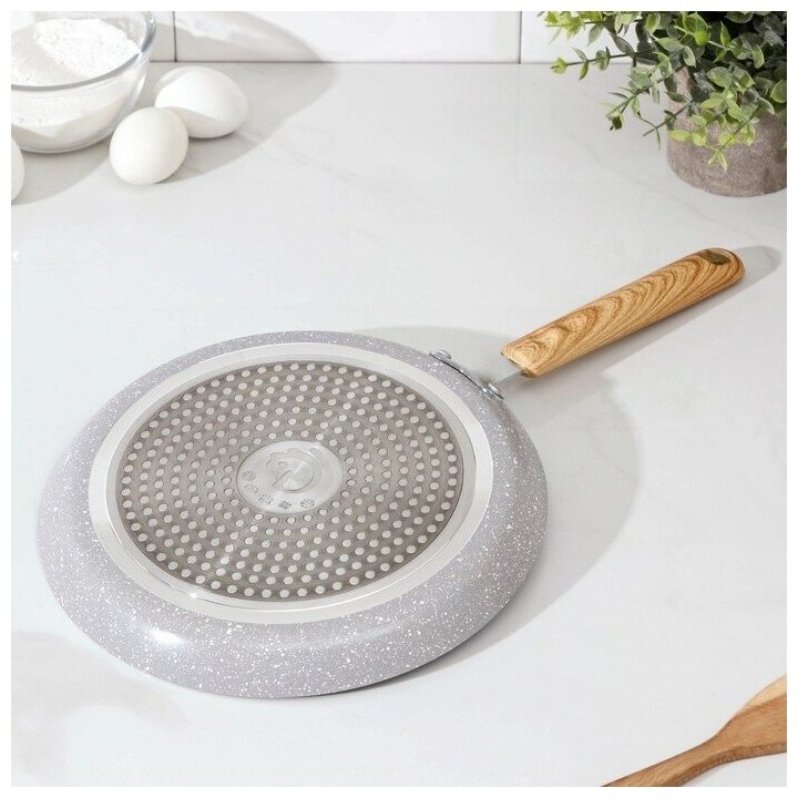 Сковорода блинная Доляна Grit, d=24 см, ручка soft-touch, антипригарное покрытие, индукция, цвет серый