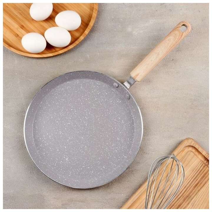 Доляна Сковорода блинная Доляна Natural. Brown, d=24 см, ручка soft-touch, антипригарное покрытие, индукция, цвет серый