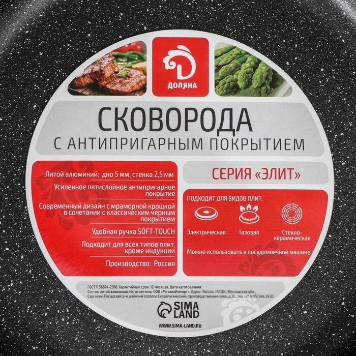 Купить Сковорода Доляна "Элит", d 28 см, антипригарная, пластиковая ручка