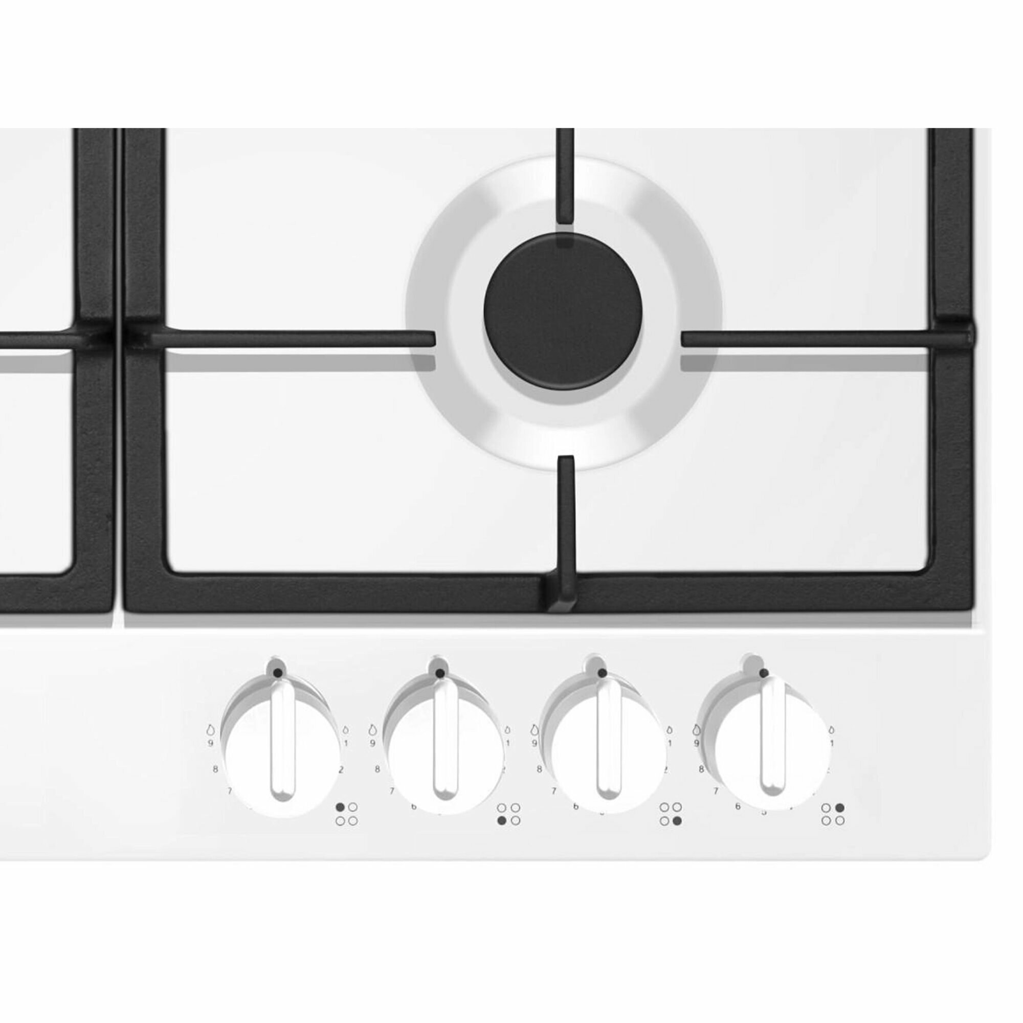 Газовая варочная панель Hansa BHGW651550, встраиваемая, 60 см, газ-контроль и автоподжиг, конфорка повышенной мощности, чугунные решетки, белая