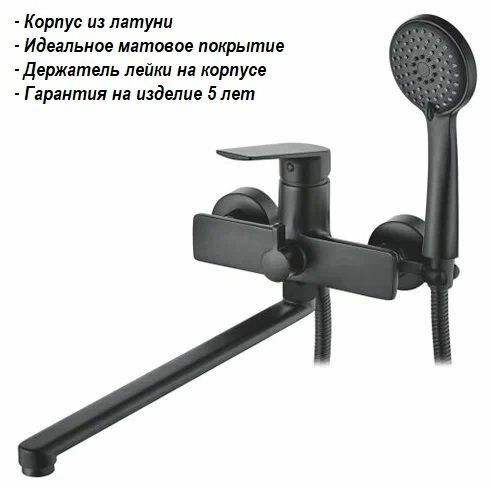 Смеситель для ванны и душа с длинным поворотным изливом, латунь, чёрный Accoona A71125F интересное: