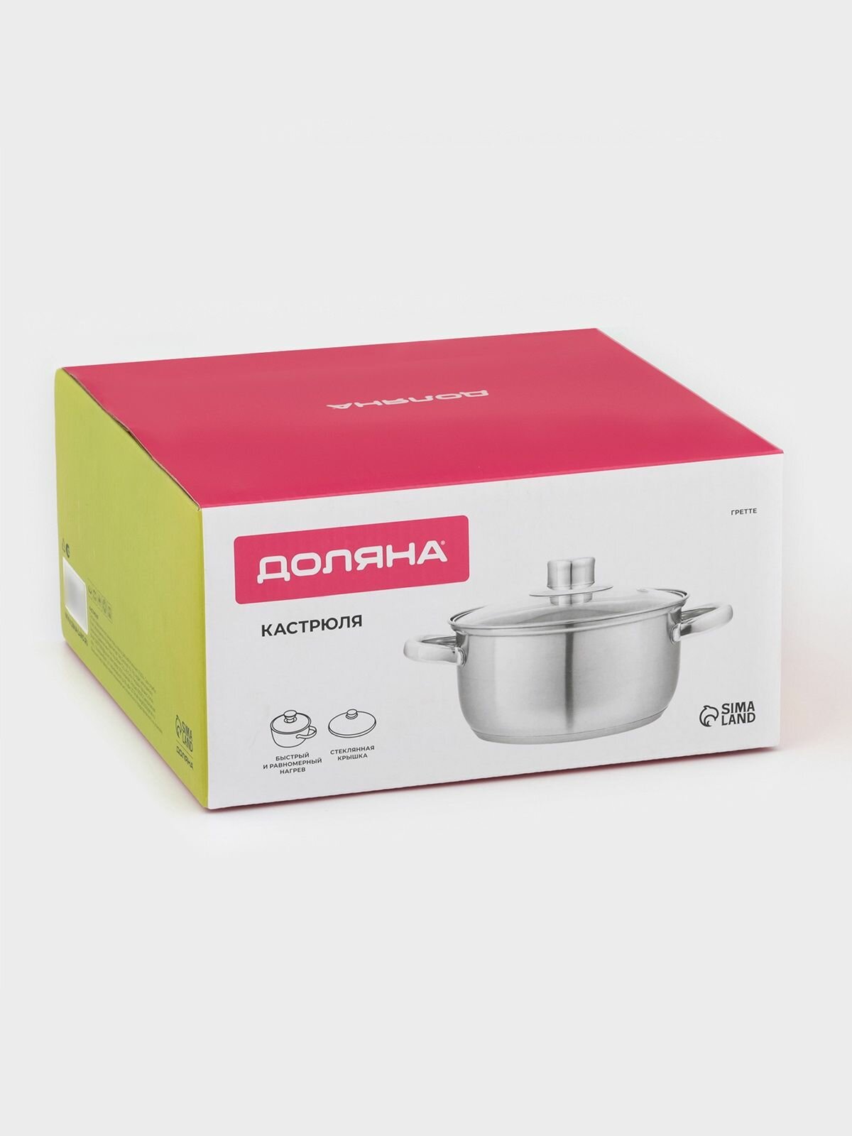 Кастрюля Доляна Гретте, 2,3 л, d=18 см, со стеклянной крышкой, капсульное дно Доляна 4097384 .