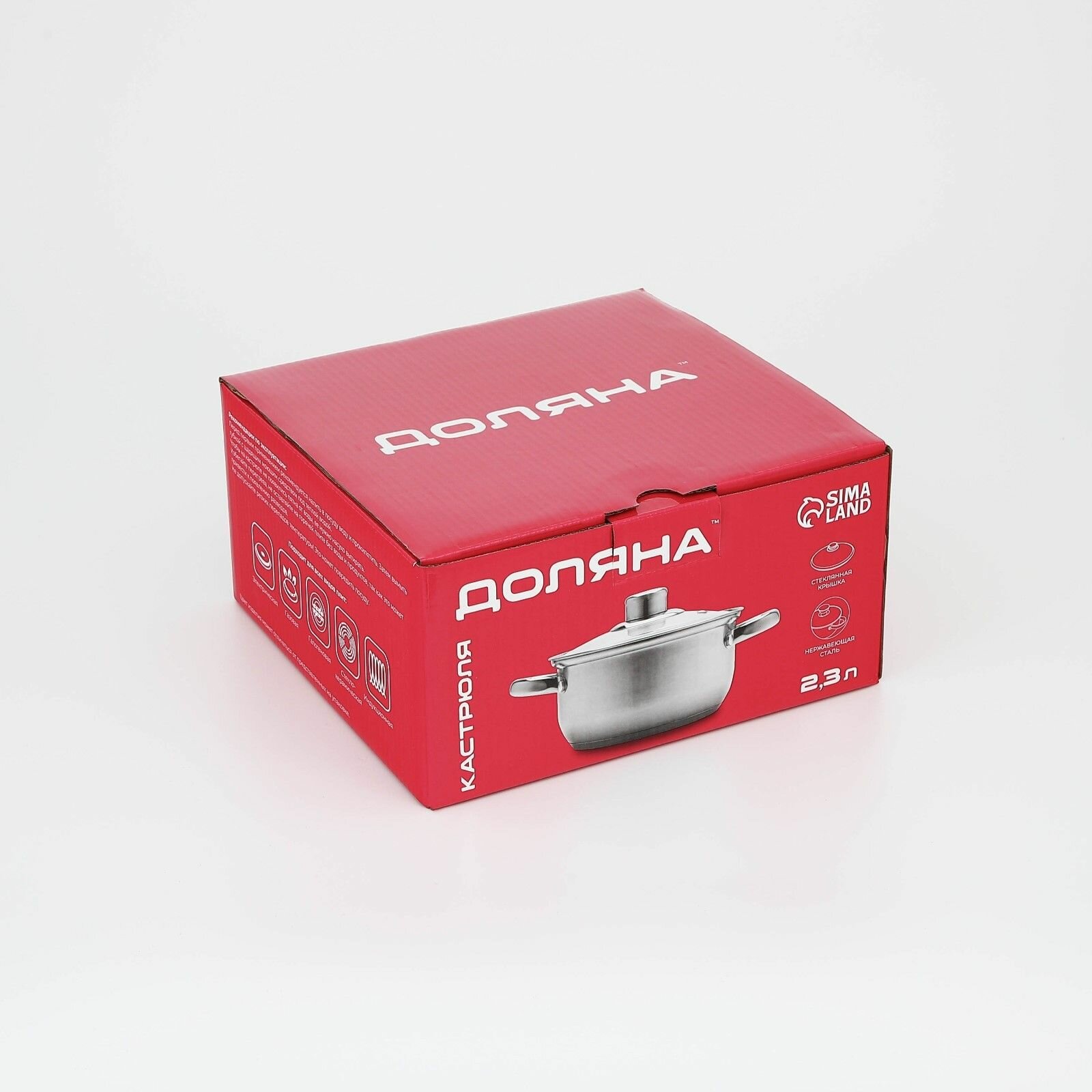 Кастрюля Доляна, из нержавеющей стали, 2,3 л., d=18 см., с крышкой, капсульное дно, индукция