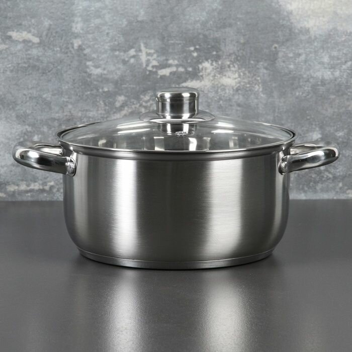 Кастрюля из нержавеющей стали Доляна «Гретте», 3,2 л, d=20 см, стеклянная крышка, капсульное дно, индукция