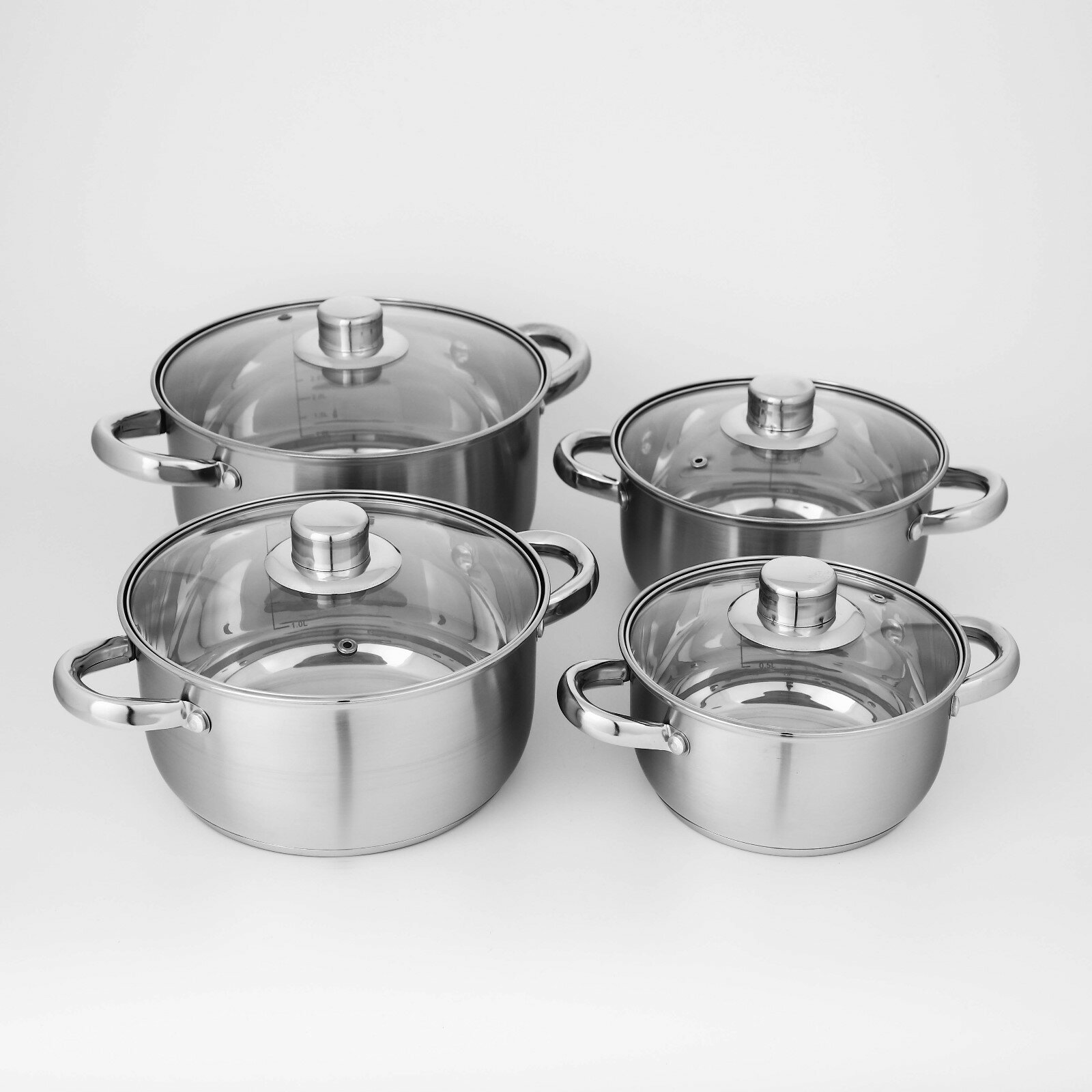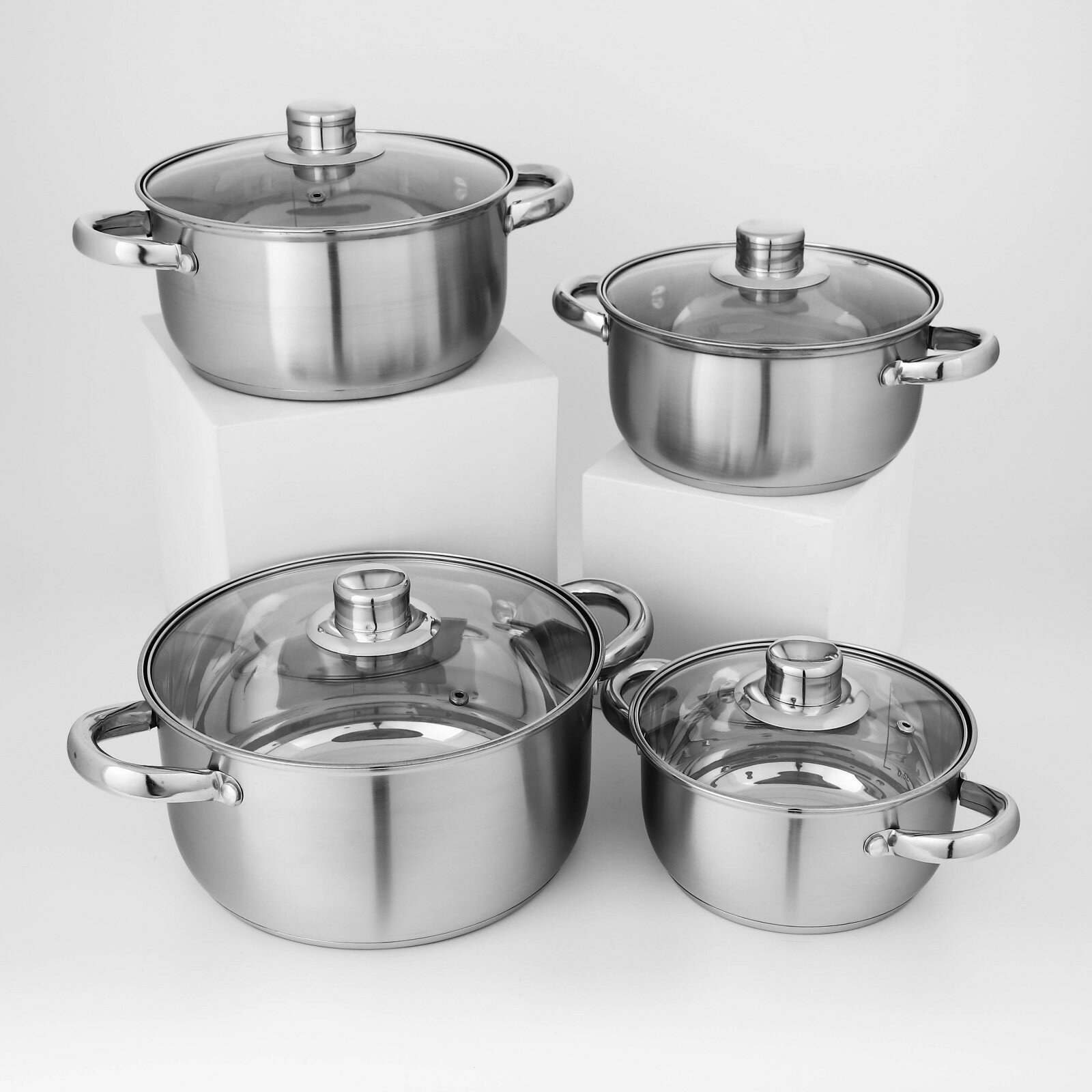 Купить Набор кастрюль из нержавеющей стали Доляна «Гретте», 4 предмета: 1,5 л, 2 л, 3 л, 4 л, d=16/18/20/22 см, крышки, 4097389