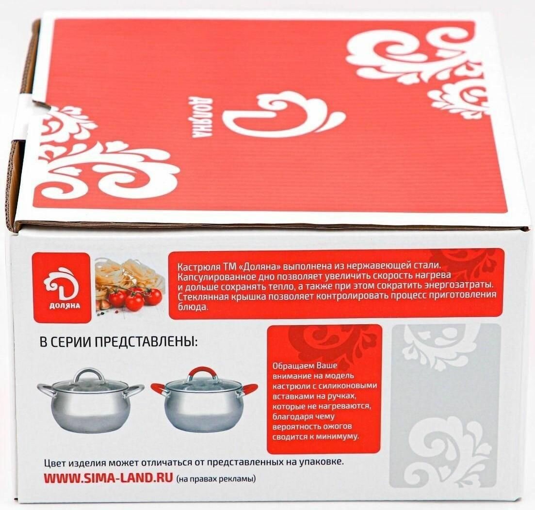 Кастрюля из нержавеющей стали Грейт, 3,6 л, капсульное дно, индукция Доляна 9929588 .