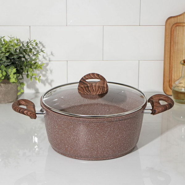 Кастрюля "Брауни", 4 л, стеклянная крышка, антипригарное покрытие, индукция, цвет коричневый