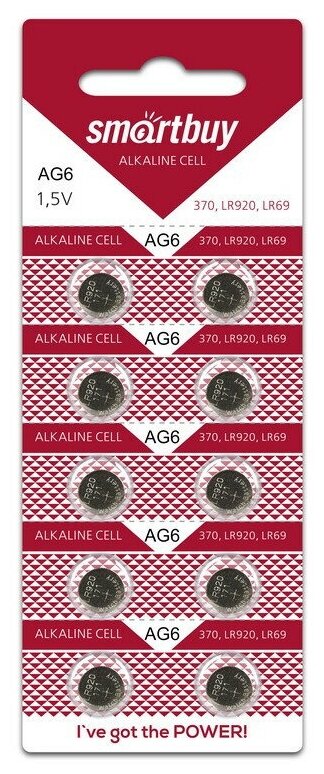 Ниже Вы можете прочитать отзывы на Элемент питания SmartBuy Alkaline Cell AG6 (lr69/ Lr921/ G6/ 171/ V371/ Sr920w) бл 10 Sbbb-ag6-10b ., ознакомится с подробными характеристиками, посмотреть интересные обзоры и фотографии на Элемент питания SmartBuy Alkaline Cell AG6 (lr69/ Lr921/ G6/ 171/ V371/ Sr920w) бл 10 Sbbb-ag6-10b ..