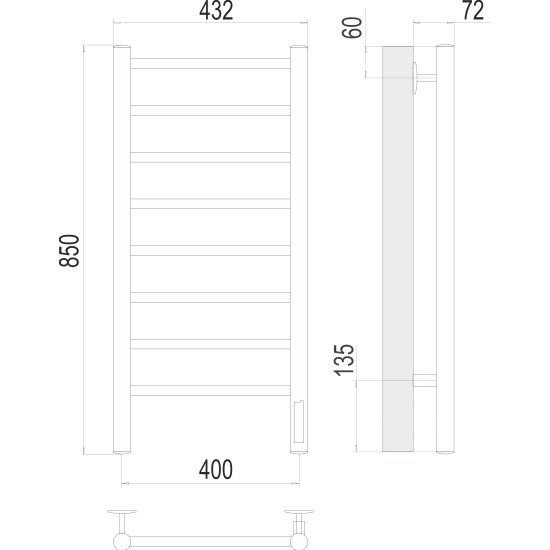 "Аврора" (скрытая проводка) электрический полотенцесушитель TERMINUS (432 мм / 850 мм / 400 мм)