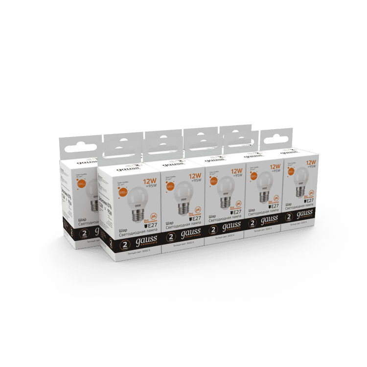 Светодиодная лампа Gauss Elementary 12W эквивалент 95W 3000K 880Лм E27 в форме шара (комплект из 5 шт)