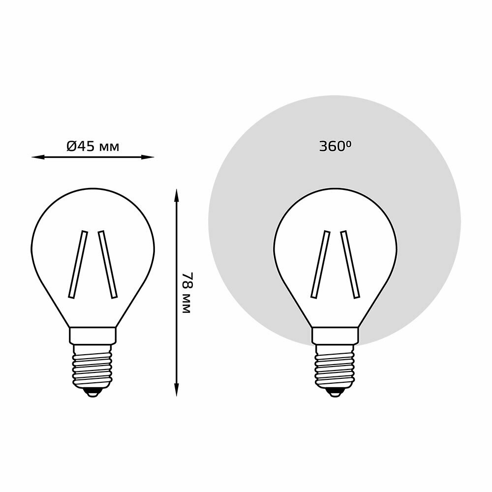 Упаковка ламп филаментная GAUSS E14, шар, 11Вт, 10 шт. [105801211]