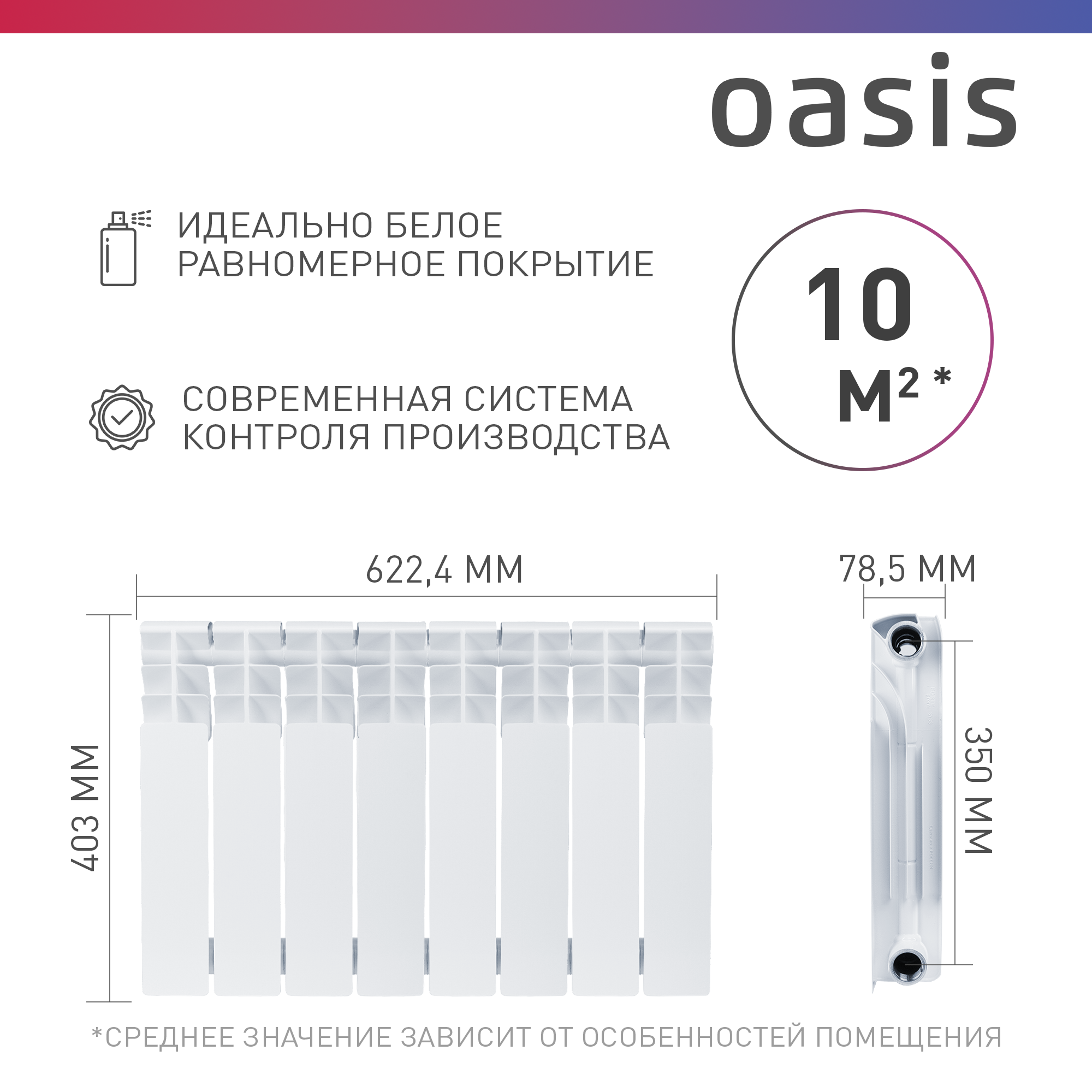 Биметаллический радиатор Oasis ECO 500/80 7 секций, 1064 Вт, Россия