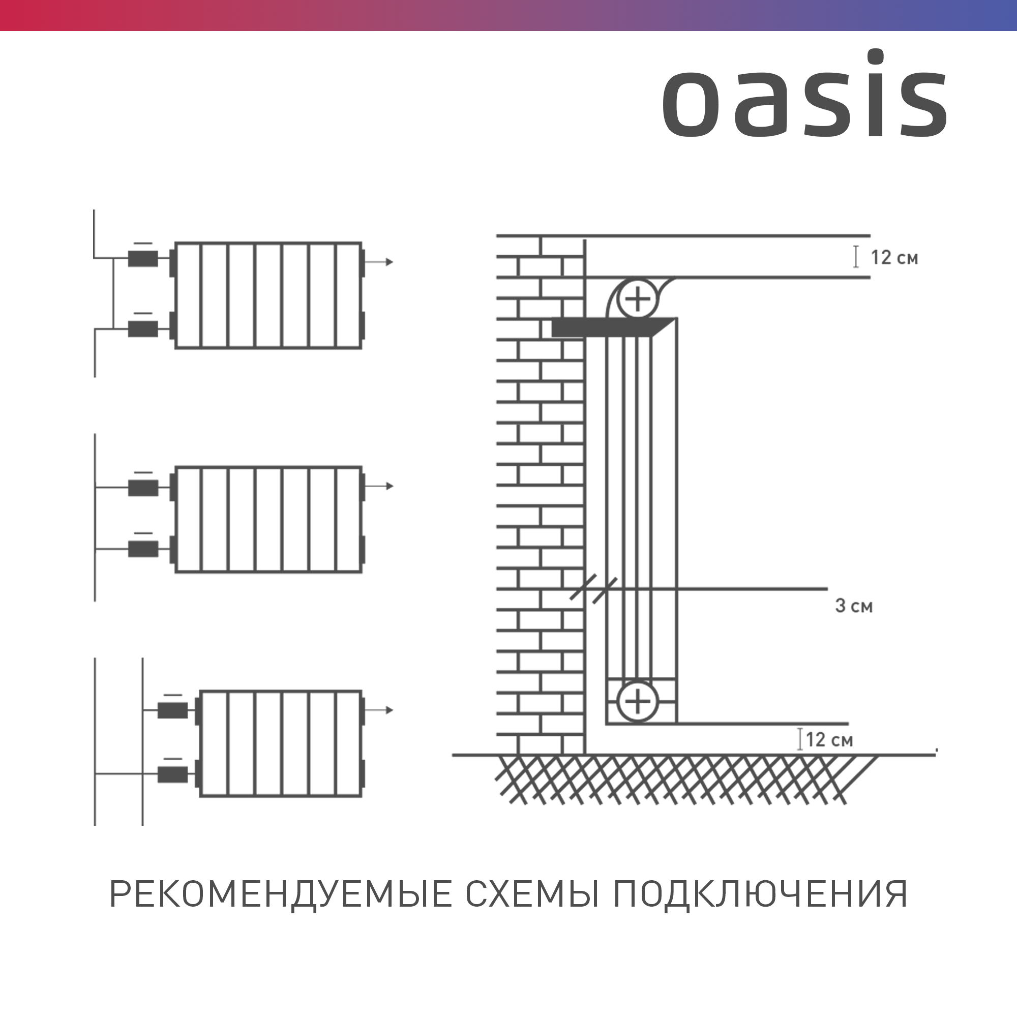 Биметаллический радиатор Oasis ECO 500/80 9 секций, 1368 Вт, Россия