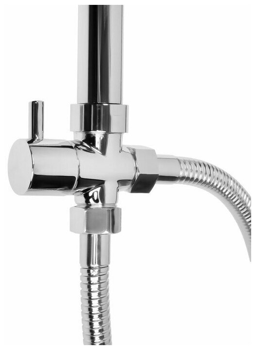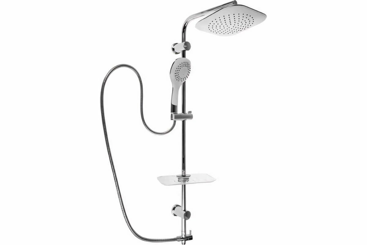 | Комплектация | штанга (22х0.5 мм / нержавеющая сталь SUS304) / верхний душ с функцией регулировки угла излива / лейка душевая (5 режимов) / душевой шланг (1.5 м / двойной замок) / шланг подключения к смесителю (50 см) / поворотный дивертор (цинк) / мыльница пластиковая / крепления |