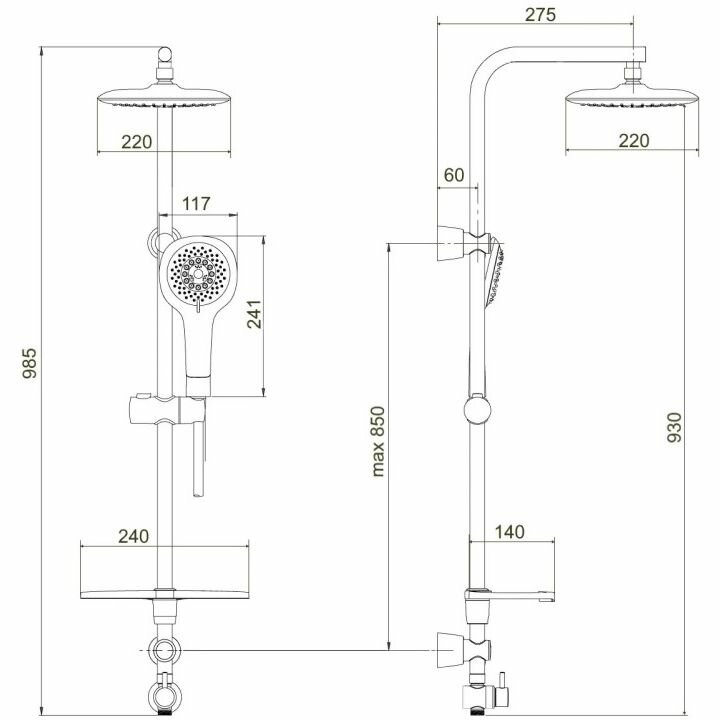 | Дополнительная информация | высота стойки 985 мм; размер верхнего душа 220х220 мм; диаметр лейки 117 мм; сертификат соответствия РСТ; ГОСТ 25809-2019 |