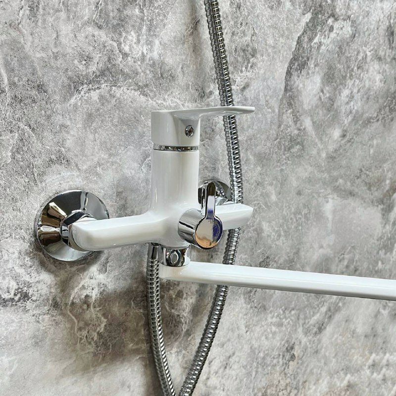 Смеситель для ванны и душа Haiba HB22557-8 с длинным изливом, белый/хром