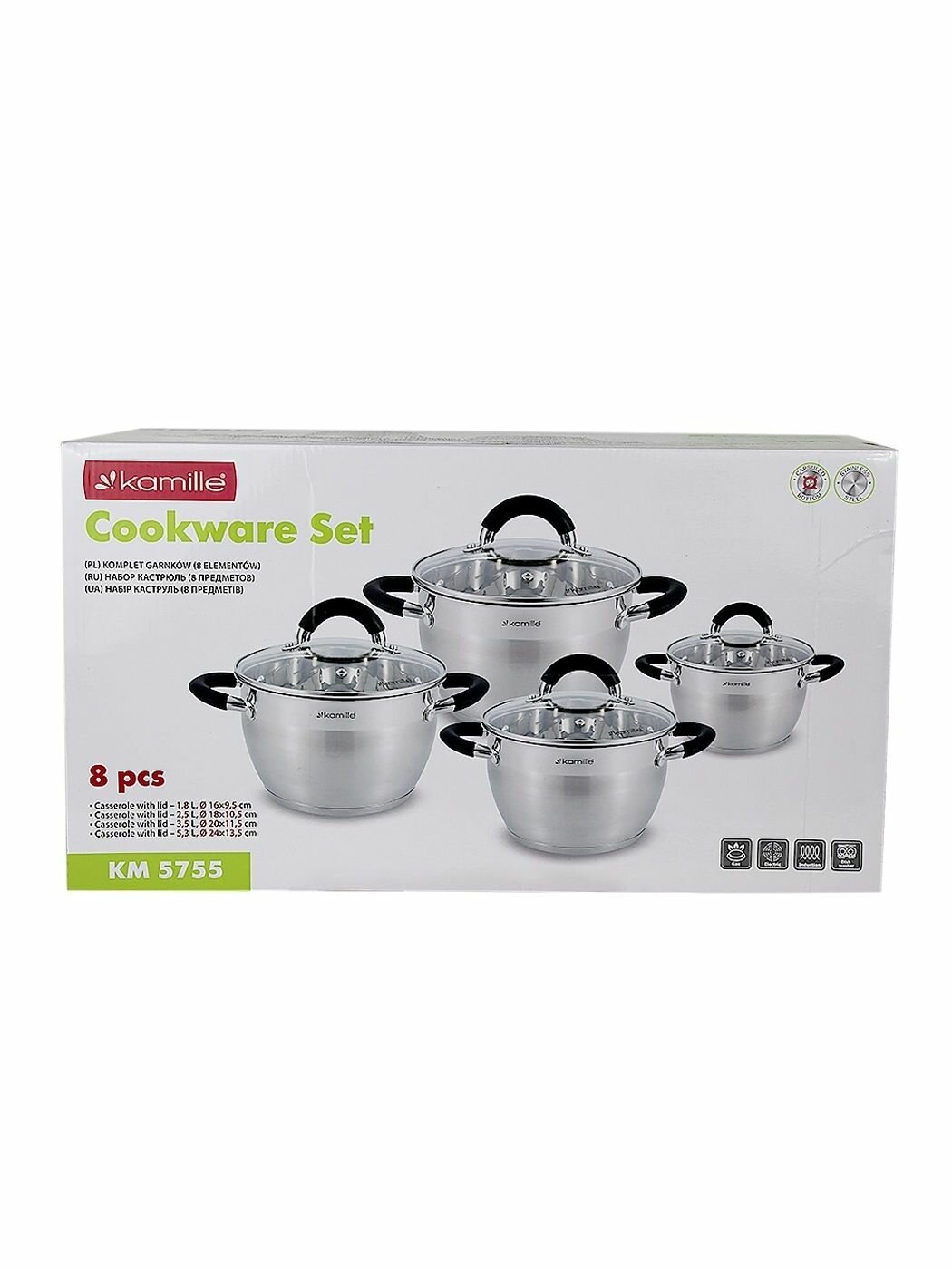 Купить Набор кастрюль с крышкой (1.8л, 2.5л, 3.5л, 5.3л) из нержавеющей стали KAMILLE KM-5755