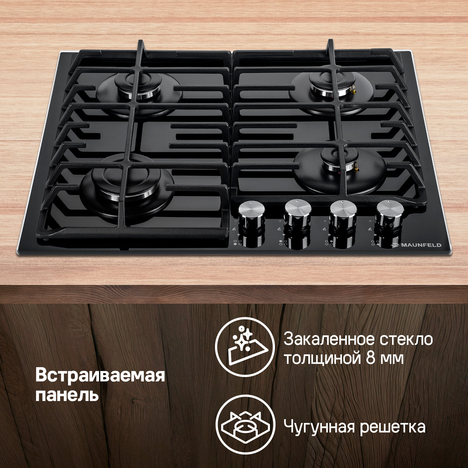 СохранитьГазовая варочная панель MAUNFELD EGHG.64.6CB/G, 4 конфорки, чугун интересное:
