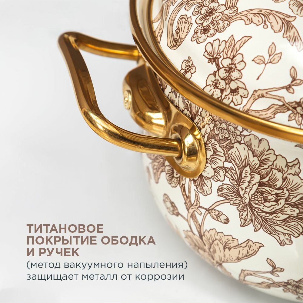 Кастрюля эмалированная с крышкой Vintage Flowers Объем: 3800 мл