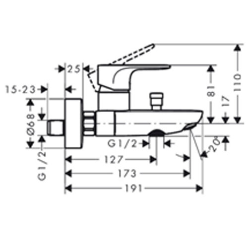 Смеситель для ванны Hansgrohe Rebris S керамический картридж, хром (72440000)