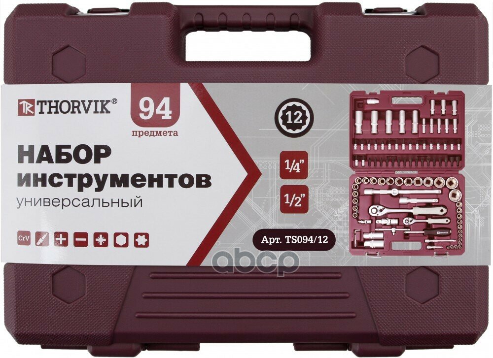 Набор Инструментов 94 Пр. Универсальный 1/4, 1/2dr С Головками Торцевыми 12-Гранными THORVIK арт. UTS0094/12