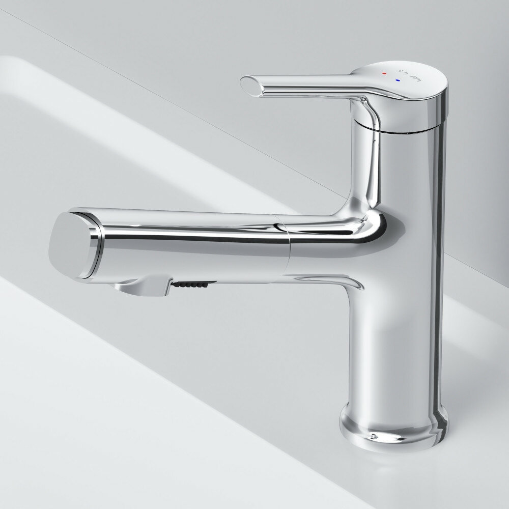 Смеситель для раковины в ванную AM.PM X-Joy S хром, вытяжной излив 140 мм, с режимом "душ", керам.картридж Soft Motion