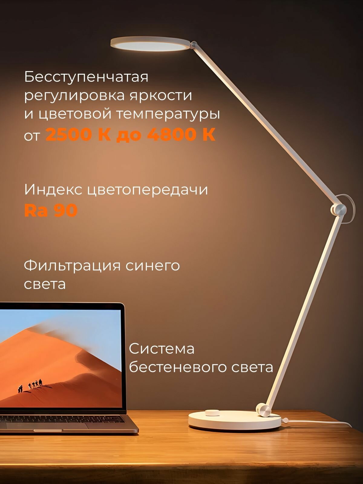 Лампа настольная Xiaomi Smart Desk Lamp MJTD02YL, поворотный механизм, белый, 12,5 Вт