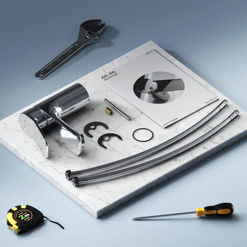 | Минусы: | В комплекте два подводящих шланга по гайку 3/8”, пришлось покупать переходники 1/2-3/8, но это не критично. |