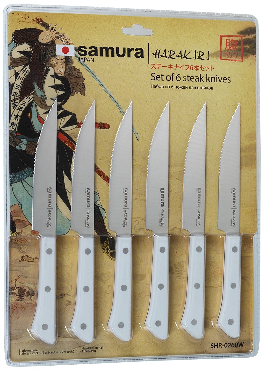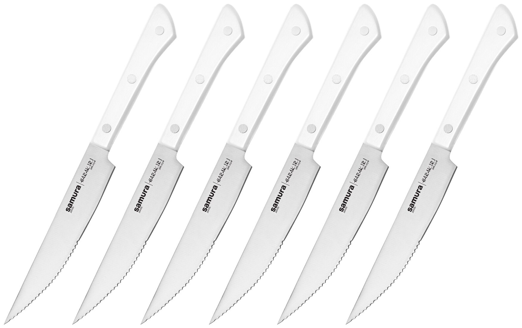 Набор ножей стейковых Samura HARAKIRI SHR-0260W/K 12,5см, белая рукоять, 6 штук