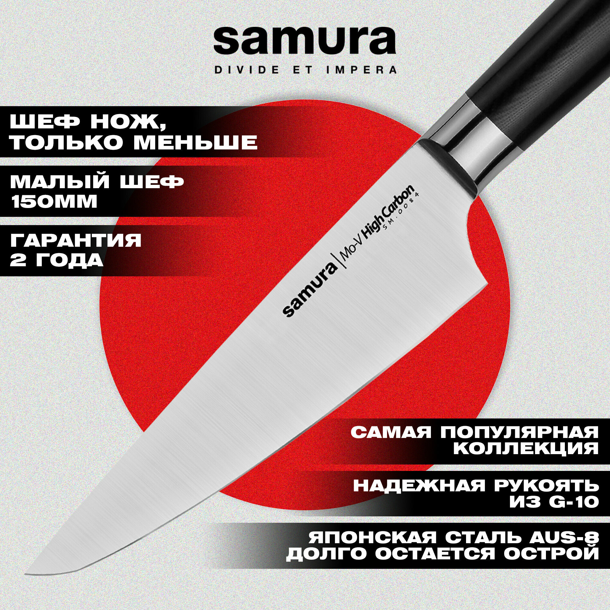 Нож кухонный Samura Mo-V, современный шеф (SM-0084) интересное: