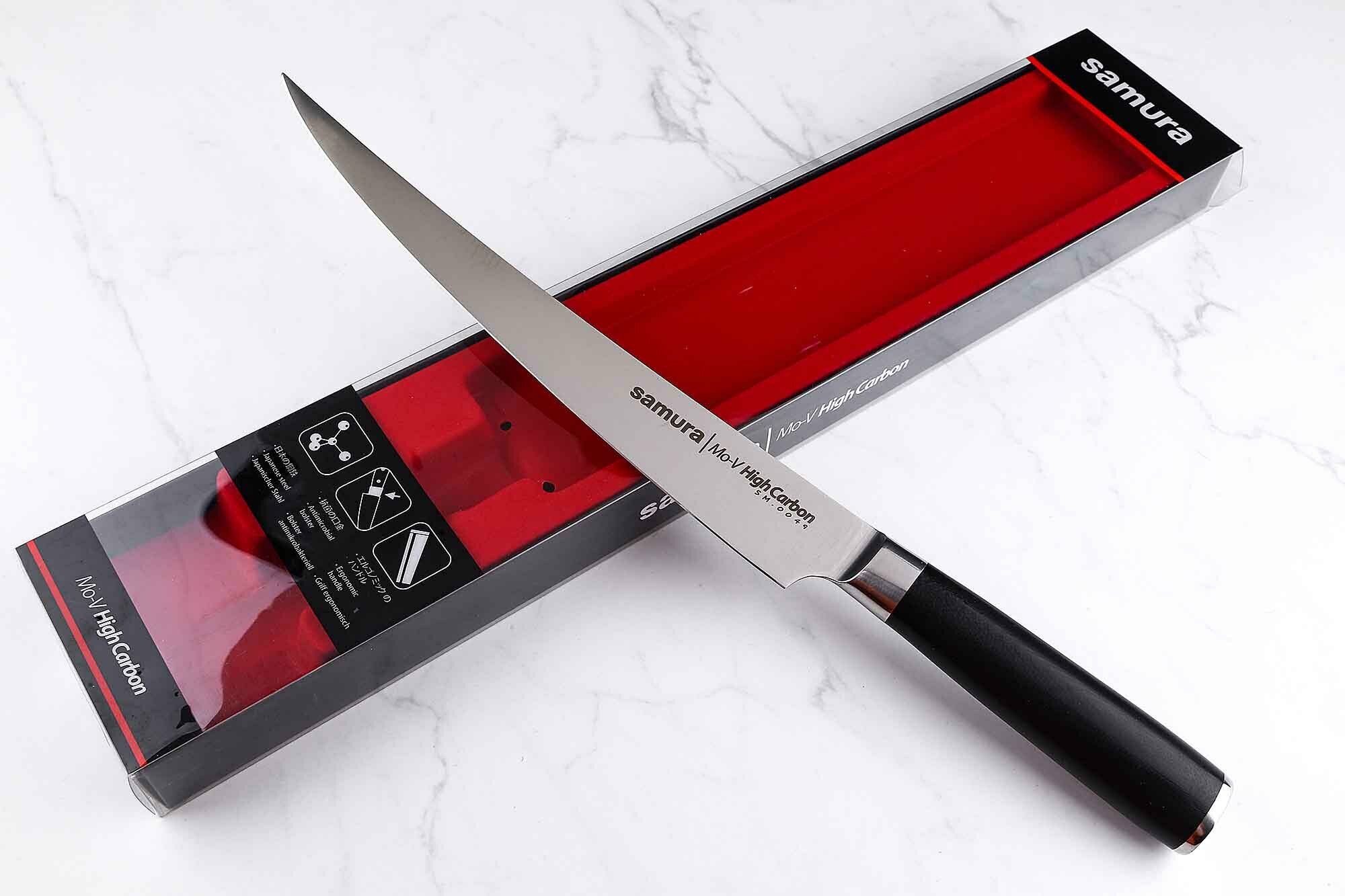 Кухонный нож слайсер для тонкой нарезки Samura Mo-V 25.1 см, японская ножевая нержавеющая сталь Aus 8, SM-0049 интересное: