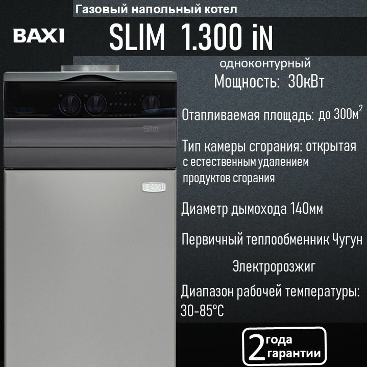 Конвекционный газовый котел BAXI SLIM 1.300 iN, (напольный), 29.7 кВт, одноконтурный
