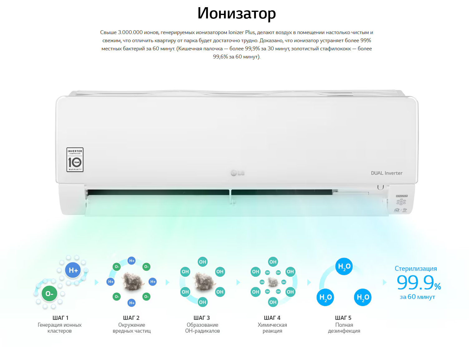 | Дополнительные функции | самодиагностика / автоматическое поддержание температуры / ионизация / автоперезапуск / система против образования льда |
