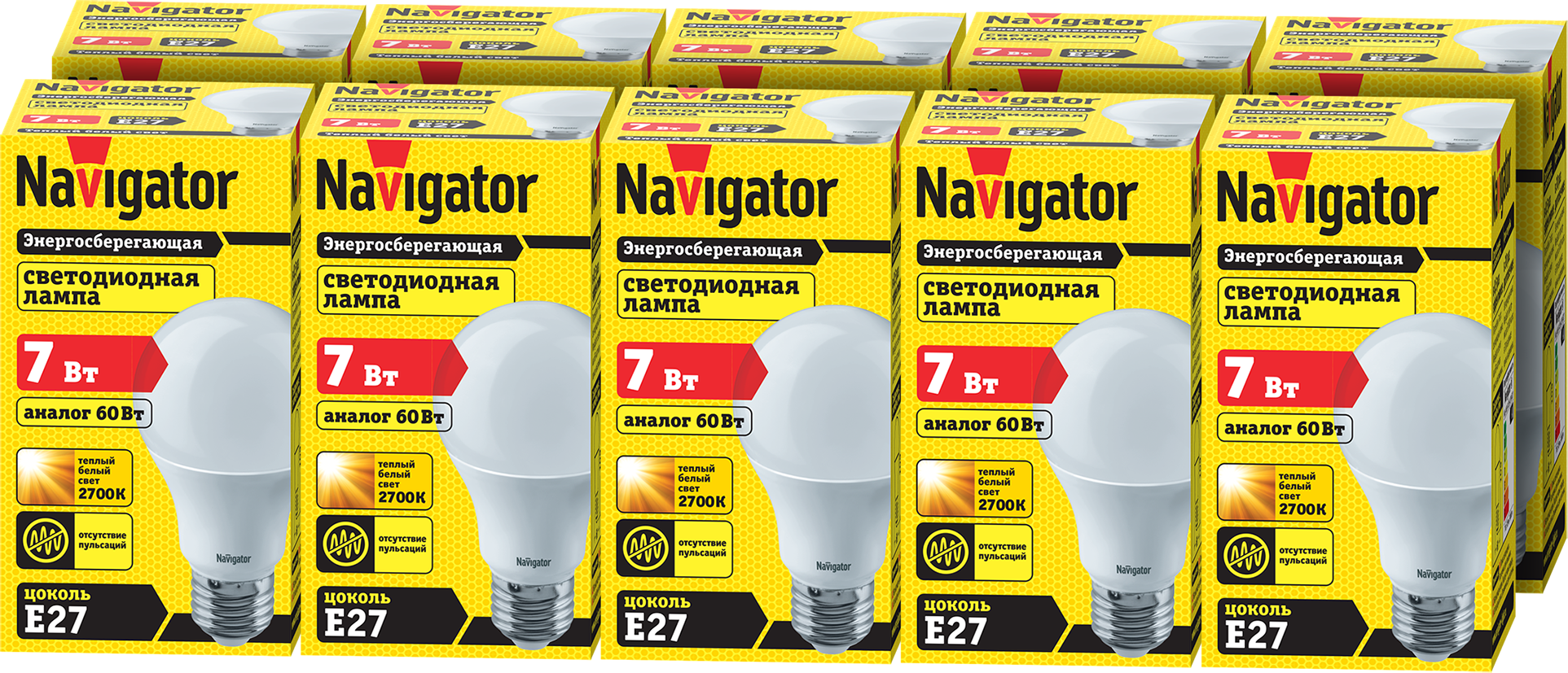 Купить Лампа светодиодная Navigator 94 385, груша, 7 Вт, Е27, теплый свет 2700К, упаковка 10 шт.