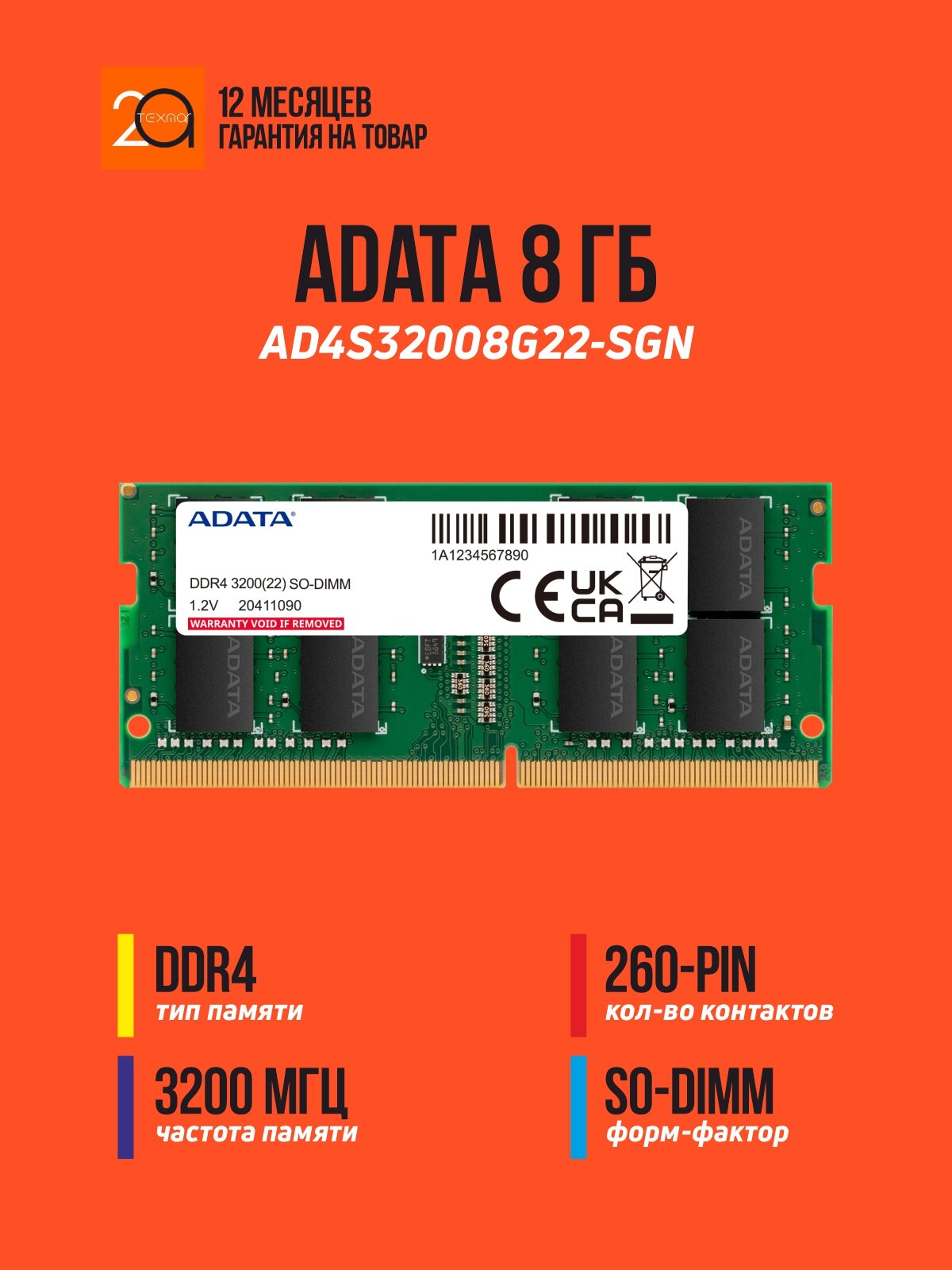 Оперативная память ADATA 8 ГБ DDR4 3200 МГц SODIMM CL22