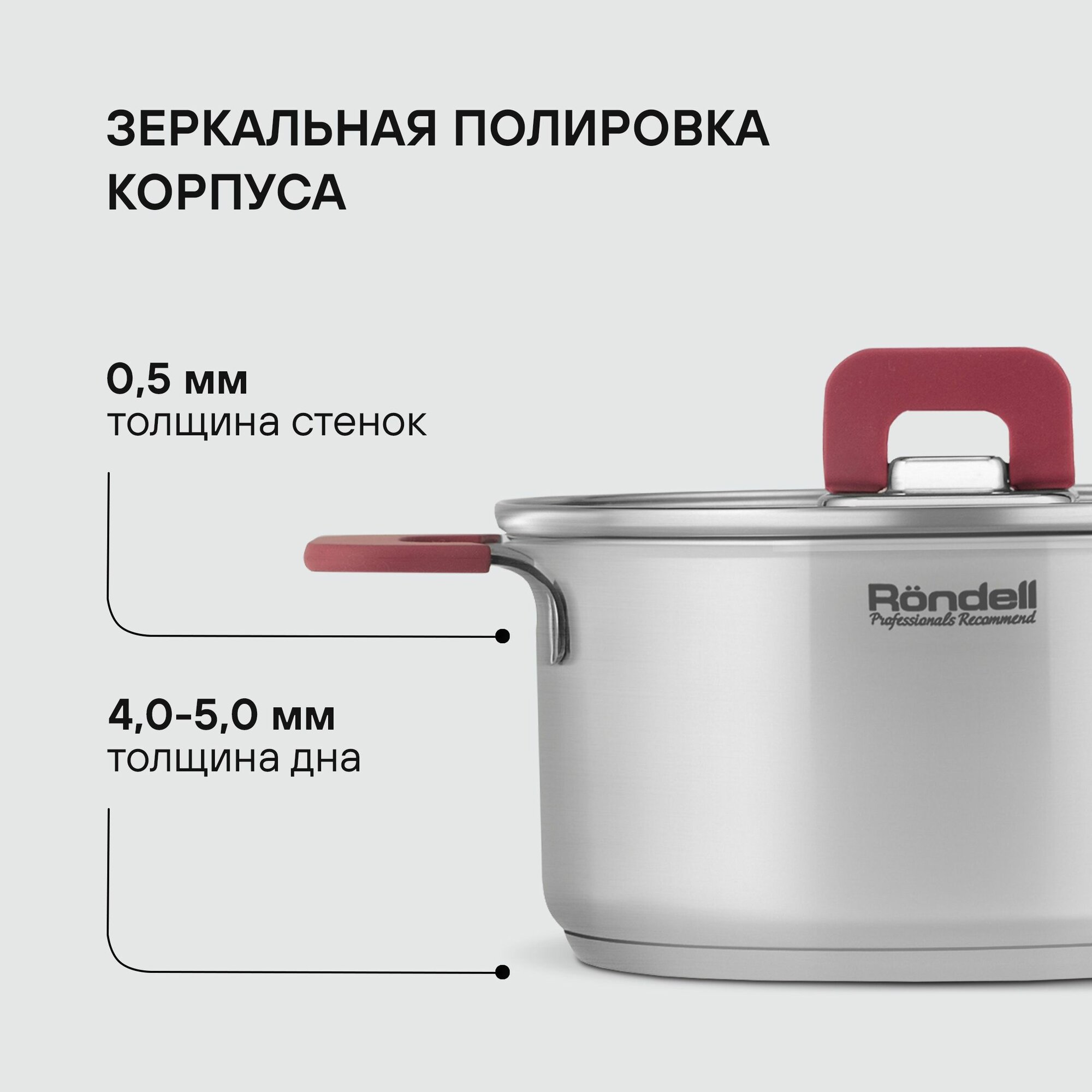 толщина дна:4,0 мм, 4,5 мм, 5,0 мм