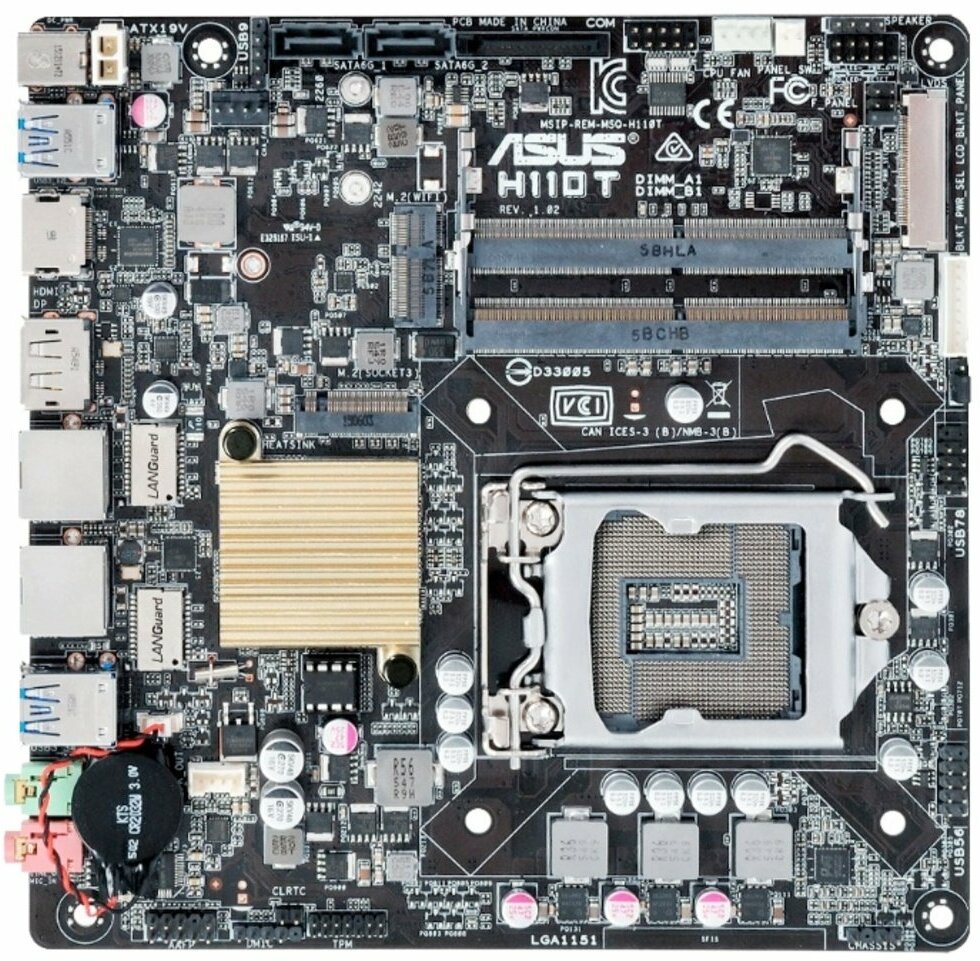Материнская плата ASUS H110T Socket-1151, H110, 2xDDR4 SODIMM, 2xSATA3, D-Sub, HDMI, DP, 2xUSB3.0, 2xGLan Mini-ITX, OEM интересное: