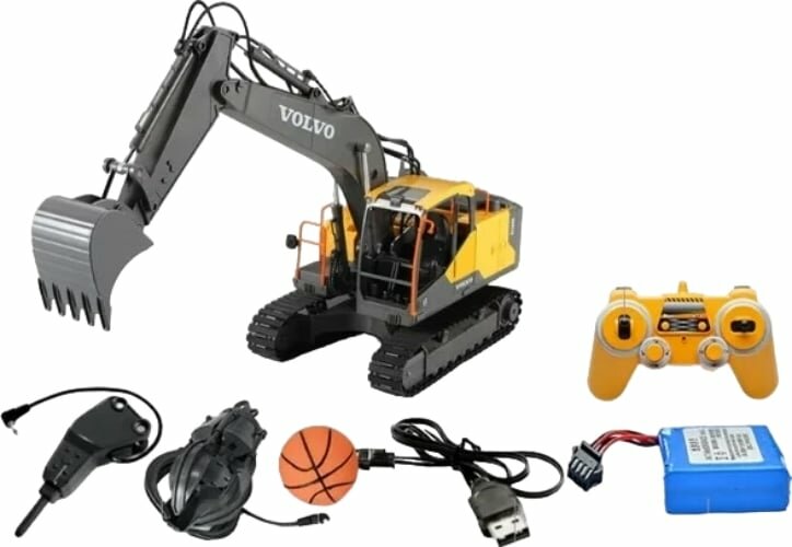 | Комплектация | экскаватор; 3 насадки (ковш, гидромолот, гриппер), пульт управления, аккумулятор 4.8v 400 mAh, USB зарядное устройство, мяч, руководство пользователя |