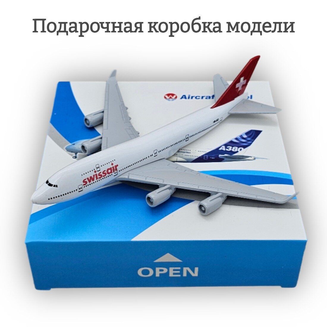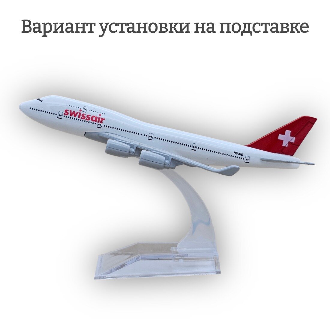 Модель самолета Boeing 747 Swissair длина 15 см (без шасси)