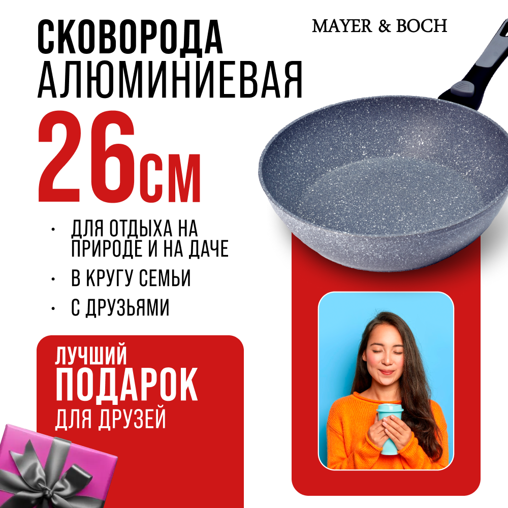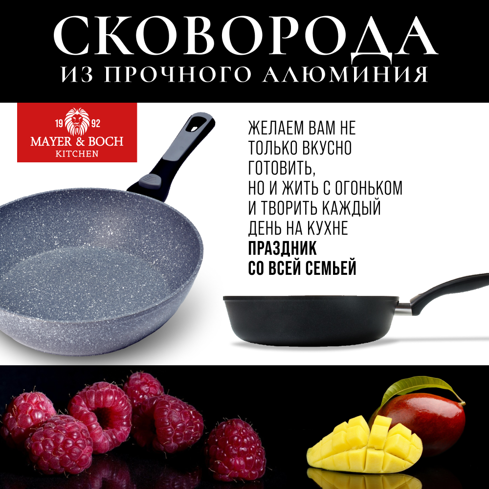 Купить Сковорода MAYER&BOCH 26см, мраморное антипригарное покрытие, съемная ручка 40410