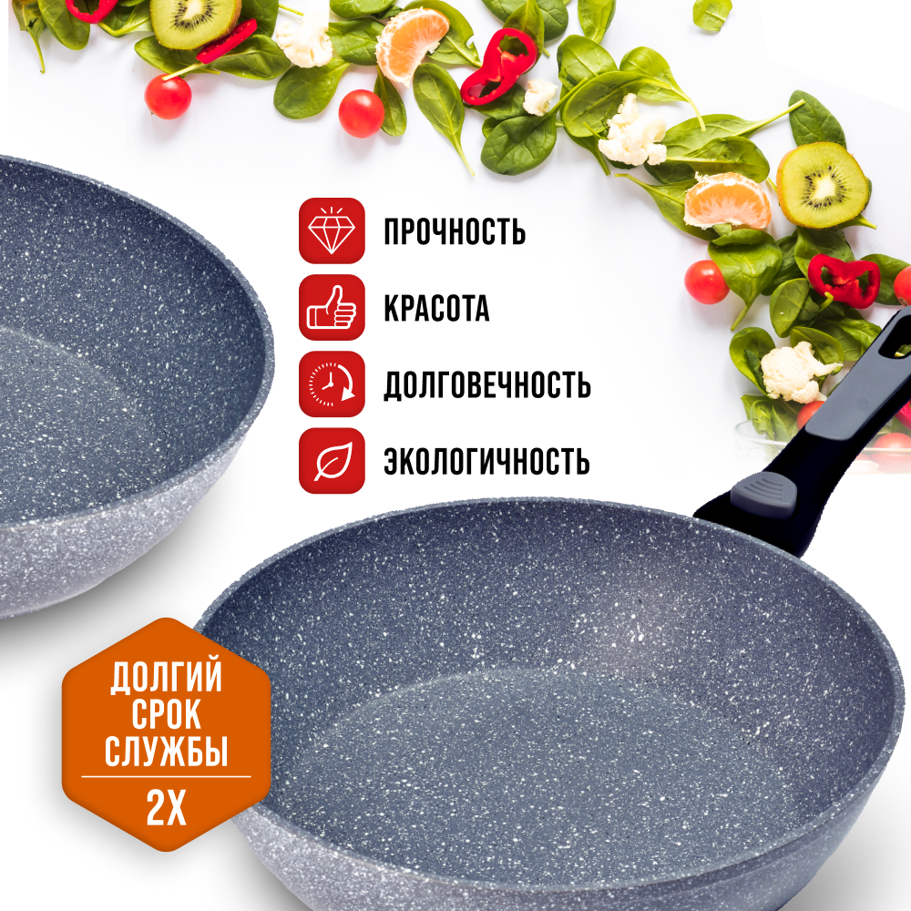 Сковорода 28 см мраморным покрытием и съемной ручкой