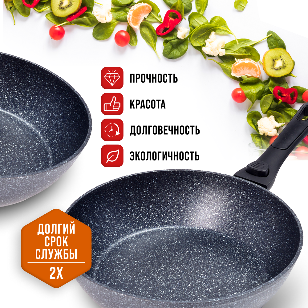 Сковорода 28 см мраморным покрытием и съемной ручкой