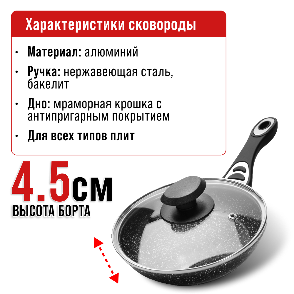 Сковорода 24 см с мраморным покрытием и съемной ручкой