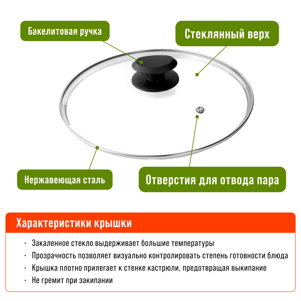 Немного похожа на сотейник (высота стенок 6 см) - меньше брызг при готовке. Диаметр - 24 см, дно внутри - 18 см. Дно снаружи - 18,5, но выступающий диск для конфорки 17см. Подошла крышка от кастрюли 24 см из стекла (без металл. ободка). |
