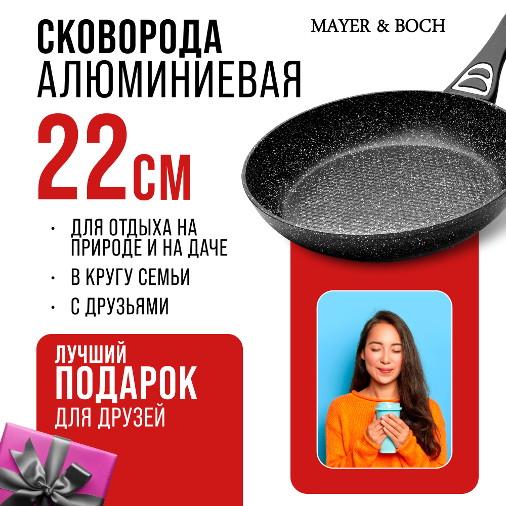 СохранитьСковорода с крышкой 22 см антипригарная MAYER&BOCH 40591 интересное: