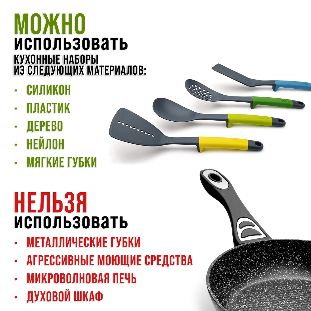 | Минусы: | Лучше использовать деревянные, силиконовые лопатки |