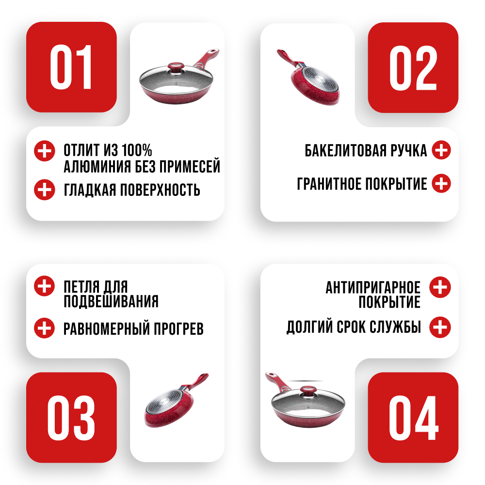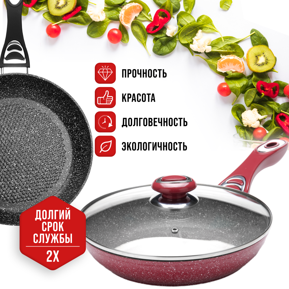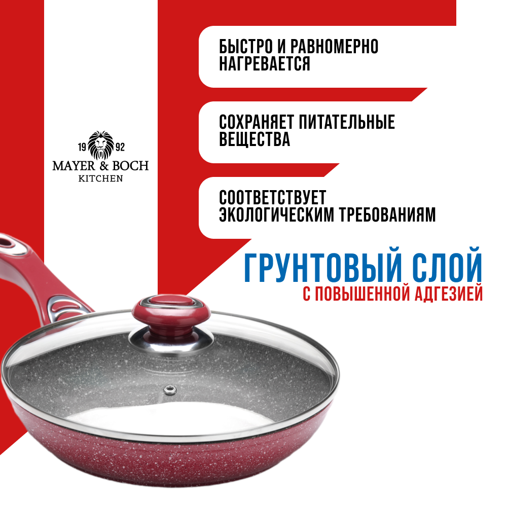 Сковорода с фиксированной ручкой Mayer&Boch, с крышкой, алюминиевая, 24см