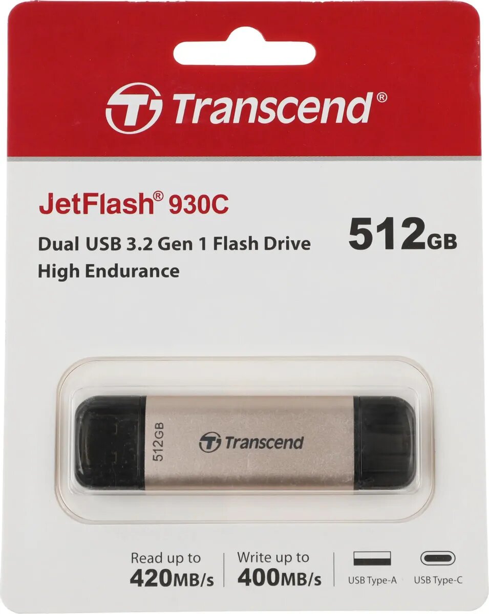 Флешка USB Transcend Jetflash 930C 512ГБ, USB3.0, золотистый и черный [ts512gjf930c] интересное: