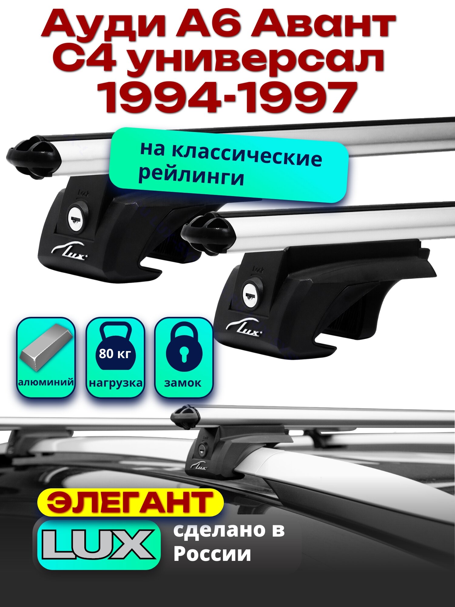 Багажник на крышу LUX элегант с замками дуги аэро-классик 53мм Ауди А6 Авант С4 универсал 1994-1997, арт:219305