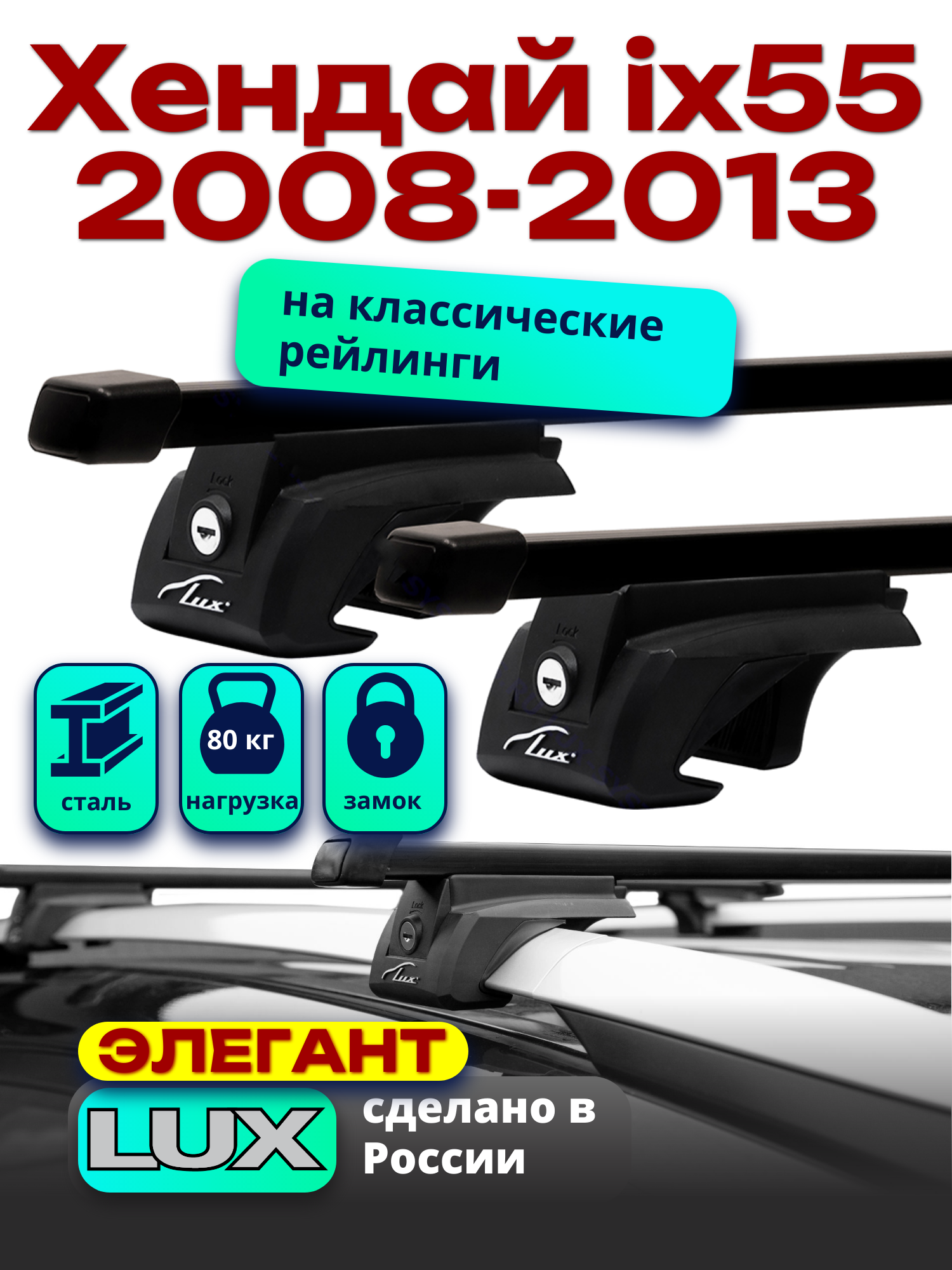 Багажник на крышу LUX элегант с замками дуги аэро-классик (53мм) 1,2м Хендай ix55 2008-2013 , а:LUX.0283